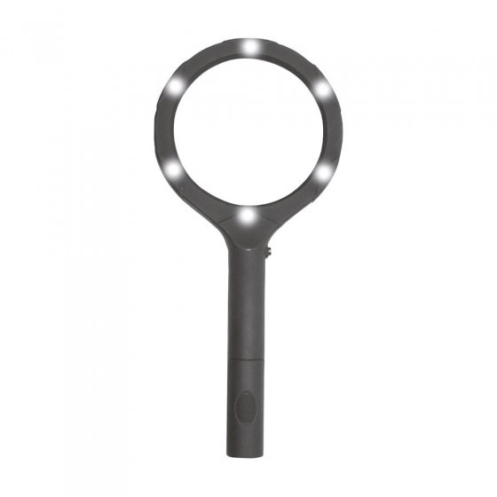 Cet loupe à led vous garantit une vision nette et précise : la grande lentille offre un grossissement x5 pour un diamètre d‘env. 8,5 cm. L‘éclairage intégré et non éblouissant est assuré par les 6 LED intégrées au corps de la lentille. Maniable et légère (140 g seulement), dotée d‘une surface Softgrip souple et permettant une bonne prise en main, elle vous sera d‘une aide précieuse dans de nombreuses situations du quotidien, pour lire de petits caractères, comme pour enlever une écharde. Fonctionne avec 2 piles AA (vendues séparément). Durée de vie des LED : env. 100 000 heures.