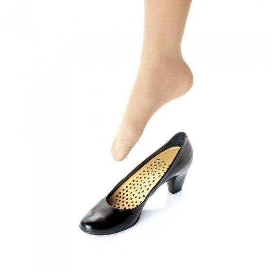 Voelbare verlichting tijdens het lopen en staan! Iedere dag moeten onze voeten zwaar werk verrichten, want het hele lichaamsgewicht steunt erop. Geen wonder, dat ze pijn doen en zwaar en moe worden! Deze innovatieve LUCHTKUSSEN-INLEGZOOL ondersteunt zacht de voet en veert weldadig bij iedere stap mee. Alsof er schokdempertjes inzitten worden de schokken en druk opgevangen. De in hoogte verschillende kussens werden aan de anatomie van de voet aangepast. Zelfs langdurig staan en gaan is met deze zolen veel gemakkelijker. En ook bij hogere belasting (hardlopen, walken) is de enorme verlichting voelbaar. Enkels en kniegewrichten worden ontzien. Klachten door permanente schokbelasting worden effectief voorkomen. Voor een optimale pasvorm snijdt u de zolen op uw individuele maat. Een weldaad voor uw voeten en voor het hele lichaam!