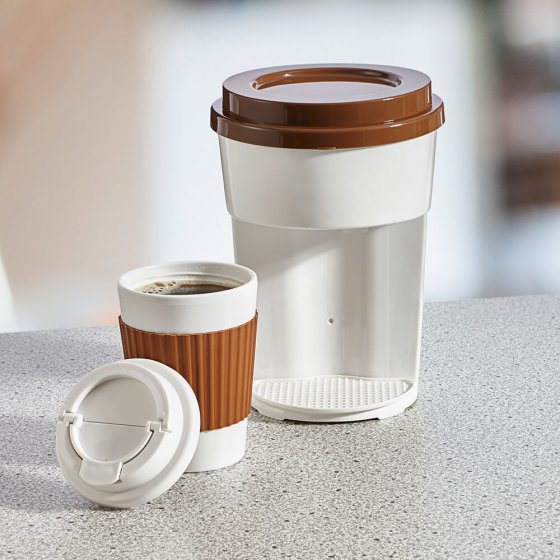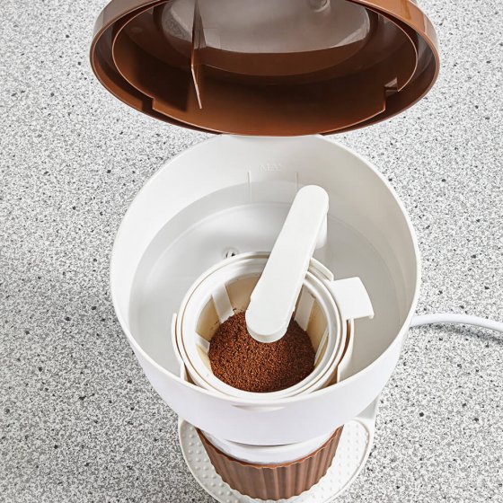 Vous aimez le café filtre frais – l’accent est sur "frais" – mais vous n’avez pas toujours envie de faire toute une cafetière dans laquelle le café reste parfois longtemps avant d’être bu ? La MACHINE À CAFÉ UNE TASSE est très efficiente et prépare en quelques minutes une petite quantité de café (maximum 350 ml), suffisamment pour une personne ! Il suffit de verser l’eau, de mettre le café moulu dans le filtre permanent et de mettre la machine en marche. La machine est livrée avec un gobelet à paroi creuse fermé par un couvercle dans lequel le café reste bien chaud même à l’extérieur. Alimentation secteur 230 V, puissance 400 W. Dimensions (l x H x P) : env. 17 x 24 x 20 cm. Optimal pour tous les amateurs de café qui apprécient une petite tasse rapide mais pas le café instantané.