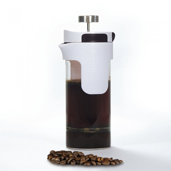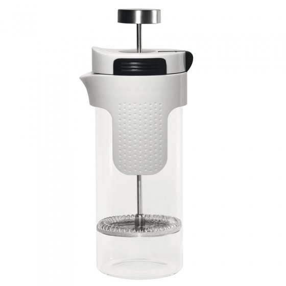 Préparez un thé et un café aux arômes subtils grâce à cet appareil qui offre au café moulu et aux feuilles de thé suffisamment d'espace pour libérer tout leur arôme. La MACHINE À CAFÉ ET THÉ STONELINE prépare le café suivant le principe de la cafetière à piston (inventée vers 1850 en France, d'où son nom de French Press) : verser de l'eau à ébullition sur le café moulu pour qu'il puisse passer facilement à travers le filtre. Après 3 à 6 minutes il suffit d'appuyer délicatement sur le piston à filtre, puis de verser. Quant au thé, il infuse dans une grosse boule à thé. Il suffit de retirer la boule à thé de l'eau quand vous jugez que le thé a assez infusé et de coincer le tube sur le côté. Bon à savoir : le récipient est en verre de silicate de bore, un matériau utilisé dans les laboratoires de chimie en raison de son excellente résistance. Il ne garde pas le goût du café ni du thé. Hauteur env. 21,5 cm, Ø : env. 10 cm, contenance env. 0,75 l, couvercle en ABS, accessoires en silicone et acier inoxydable, verre résistant à une température de 500°C, passe au micro-ondes et au lave-vaisselle. Une explosion d'arômes sans filtre papier ni électricité !