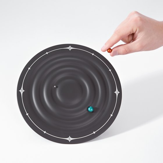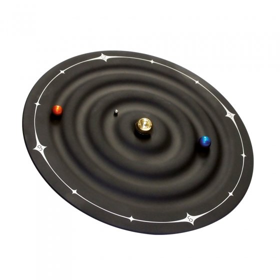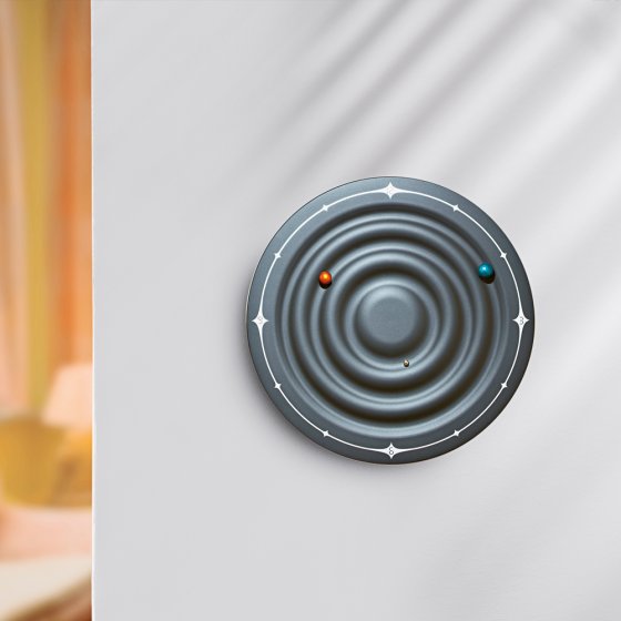 Kijk op "tijd en ruimte": de magneet klok laat planeten draaien.