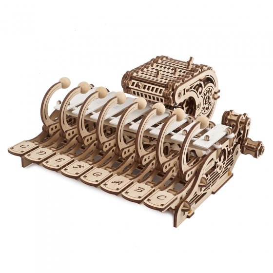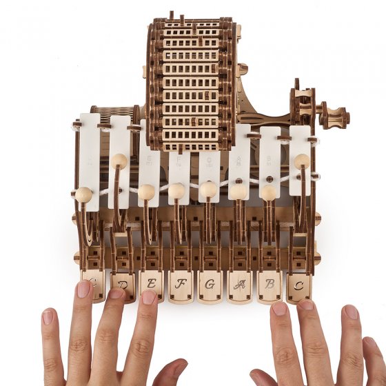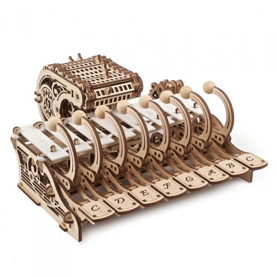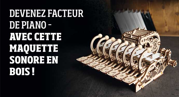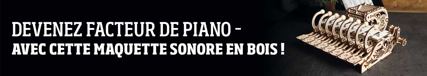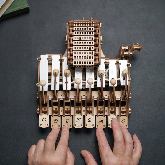 La MAQUETTE EN BOIS PIANO MÉCANIQUE est à la fois une source de plaisir pendant l'assemblage, un instrument permettant de développer ses talents musicaux, et une boîte à musique aux accents nostalgiques. Cet instrument multifonctionnel peut s'utiliser comme un piano pour jouer une mélodie, mais aussi comme boîte à musique à rouleau tabulateur actionné par une manivelle. Le rouleau peut être librement « programmé » à l'aide des tiges de bois afin d'obtenir les mélodies les plus diverses. Mais avant tout cela, il faut assembler les 573 pièces du modèle. Vous n'avez pas besoin de colle pour cela. Dimensions (modèle assemblé) : env. 28 x 29 x 12 cm. Matière : bois et plaques de métal. Découvrez vos talents pour le bricolage et la musique !