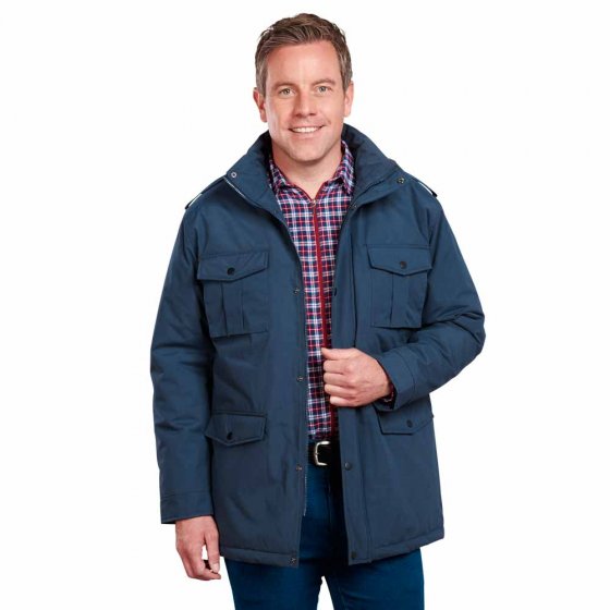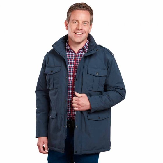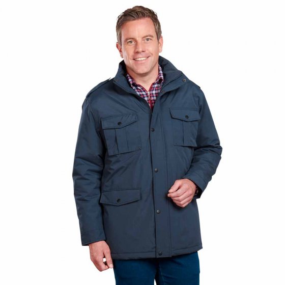 Binnen de herenmode behoren fieldjackets al heel lang tot de favorieten, ook al waren ze ooit bedoeld voor de piloten van het Amerikaanse leger. Wat dit MARITIEME FIELDJACKET zo bijzonder maakt, is de stoere en tevens zeer stadse flair. Het jack is perfect voor de stad en buiten, zeer comfortabel en overal bij te dragen. Karakteristiek voor de army-look zijn de hoogsluitende staande en platte kraag, de epauletten en de 4 klepzakken met drukknoop. Voor de bescherming tegen kou en wind zorgen de gewatteerde, doorgestikte voering en de sluiting met een rits en drukknopen. Deze robuuste jas van Rick Armand is gemaakt van 100% polyester en heeft 2 binnenzakken met rits.