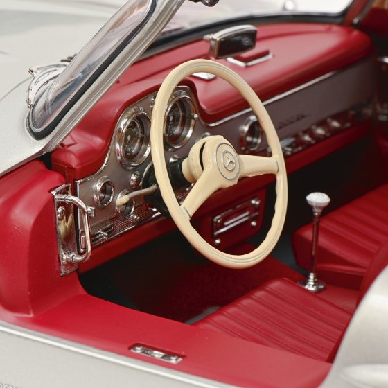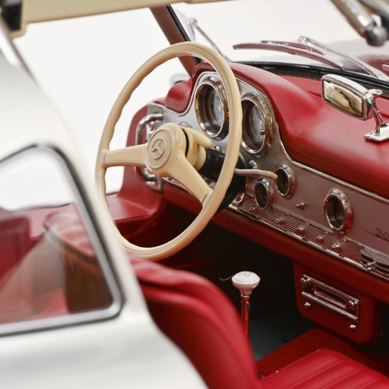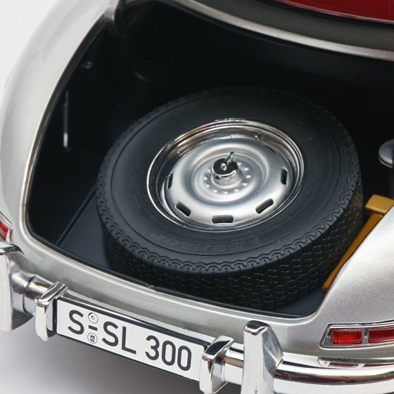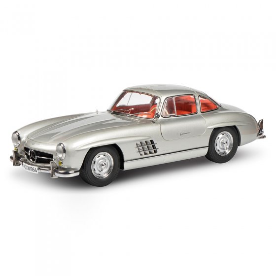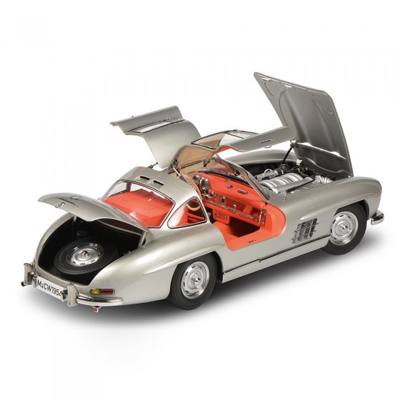 De MERCEDES BENZ 300 SL COUPÉ, gebouwd van 1954 tot 1957, is één van de beroemdste auto’s die Mercedes ooit heeft gemaakt. Hij baarde opzien, niet alleen vanwege zijn voor die tijd fantastische rijprestaties (260 km/u), maar ook vanwege zijn vleugelachtige vouwdeuren. Goed bewaarde auto’s zijn vandaag ongeveer een miljoen euro waard. Het model in de indrukwekkende schaal 1:12 is aanzienlijk goedkoper, maar niet minder exclusief - het is beperkt tot 500 exemplaren wereldwijd. Alle kleppen en deuren kunnen worden geopend, de besturing is functioneel. Afmetingen (l x b x h): ca. 38 x 15 x 11 cm. Trakteer uzelf op een droomauto die ook als model een echte zeldzaamheid is!