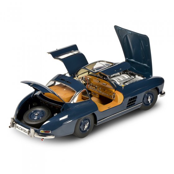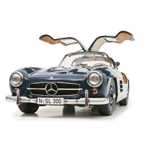 Als mensen het over peperdure Duitse auto's hebben, duurt het niet lang voordat de MERCEDES BENZ 300 SL GULLWING wordt genoemd. Hij werd geïntroduceerd in 1954 en groeide al snel uit tot de favoriete sportwagen van de internationale jetset dankzij zijn adembenemende topsnelheid van meer dan 250 km/u. Ook vandaag de dag is het een auto voor miljonairs, want gerestaureerde exemplaren hebben een 7-cijferig prijskaartje. Bestel dit juweeltje van een auto nu als een 1:12 model! De klassieke vleugeldeuren zijn scharnierend, net als de motorkap. De besturing is volledig functioneel. Afmetingen (l x b x h): ca. 38 x 15 x 11 cm. Opgelet: het model is gelimiteerd en bijna even zeldzaam als het origineel.