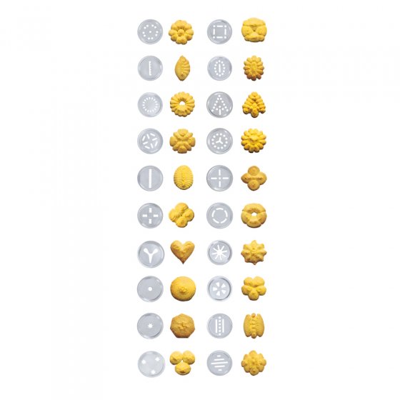 Bak je graag koekjes? Koekjes vormen met een spuitzak is niet echt gemakkelijk – en met een plastic spuitpistool wordt het al niet veel beter. Wij hebben de oplossing, de METALEN DEEGPERS! Dankzij de robuuste behuizing en het hefboomsysteem wordt het vormen van allerlei soorten koekjes kinderspel. De 20 meegeleverde metalen mallen en 4 spuitmonden maken talloze variaties mogelijk: bloemen, vierkanten of harten – laat je creativiteit de vrije loop! Afmetingen: lengte ca. 23 cm, breedte ca. 14 cm. Met instelmogelijkheid voor twee verschillende koekjesformaten. Uiteraard is de pers ook heel handig voor het vullen van koekjes (bijv. donuts). Probeer het zelf maar eens!