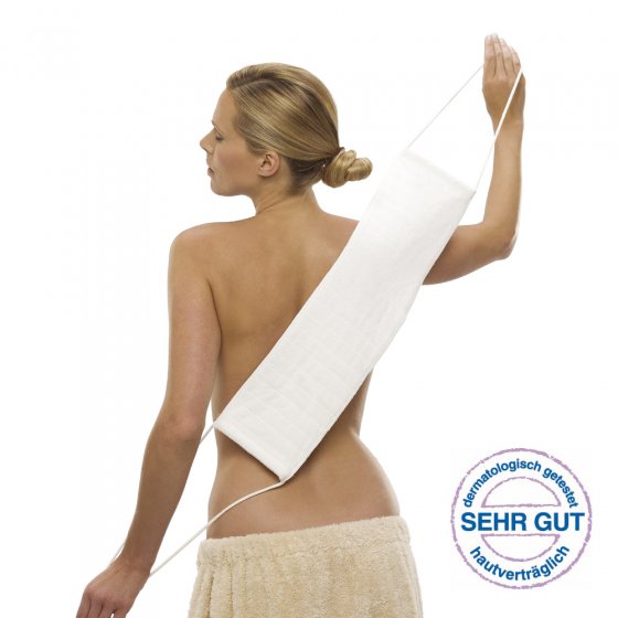 Het geheim van een jong uiterlijk: een goed doorbloede, zachte huid – niet alleen in het gezicht. De huid regelmatig grondig reinigen is de sleutel tot het behoud van een jonge huid. Betekent dit dat u regelmatig naar de schoonheidsspecialiste moet om er jong uit te blijven zien? Nee, want met de MICROPEELING RUGREINIGINGSDOEK kunt u uw huid zelf scrubben en komt u gemakkelijk bij gedeelten van uw lichaam die moeilijk bereikbaar zijn, zoals uw rug. De extreem fijne microvezels van de reinigingsdoek reinigen tot diep in de poriën en verwijderen ophopingen van talg en dode huidcellen. U hebt alleen water nodig, andere reinigingsproducten zijn overbodig! Het masserende effect zorgt ervoor dat uw huid niet alleen tot diep in de poriën gereinigd is, maar er ook frisser uitziet. U voelt zich van top tot teen verzorgd en fris en straalt dat uit! De rugreinigingsdoek is gemaakt van polyester (86%) en nylon (14%) en heeft stevige lussen aan elk uiteinde. Afmeting reinigingsdoek (l x b): ca. 60 x 16 cm. Houd uw huid jong – elke dag opnieuw!