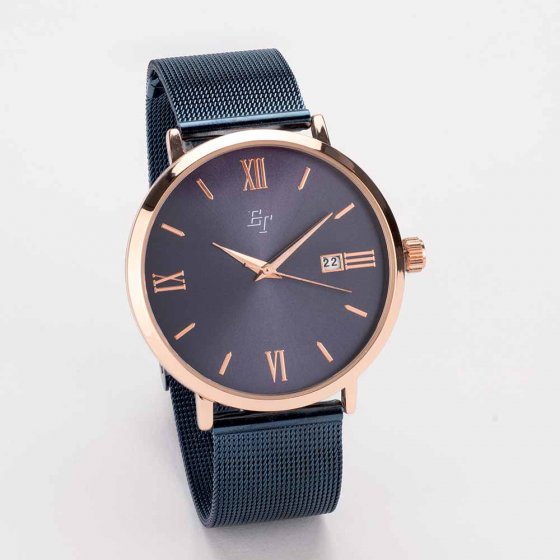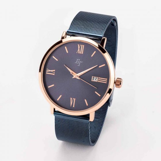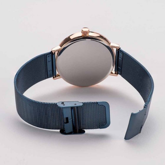 Het MILANAISE-HORLOGE 'REGENT' overtuigt over de hele lijn: de fijne openingen in het edelstalen meshbandje laten de huid ademen, terwijl het puristische design in chic blauw bijzonder elegant is. Lengte naar wens instelbaar. Afmetingen (l x Ø): ca. 24 x 4 cm. Gewicht: 42 g. Kleur: blauw, rozegoud.