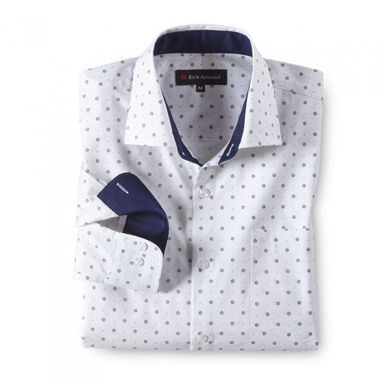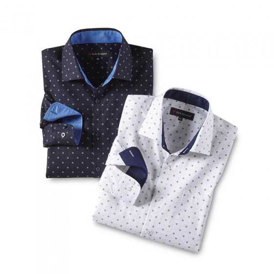 Dankzij de elastische kwaliteit van katoen en de fijne print all-over print is dit ’MILANO’ STRETCHOVERHEMD helemaal van nu. Het ziet er aantrekkelijk en modern uit, precies wat u zoek, en is daarbij heerlijk comfortabel: zo vrij heeft u zich in een overhemd nog niet eerder bewogen. Wat ook in het oog springt zijn de contrasten bij de kentkraag, bij de knopenlijst en bij de verstelbare manchetten. Het overhemd met lange mouwen van 97% katoen en 3% elastan heeft een geborduurde borstzak en 2 rugplooien. Het is afgerond bij de zoom afgerond en volledig wasbaar. Echt mooi zijn ook de kleuren: wie slim is, bestelt er twee als voordeelset.