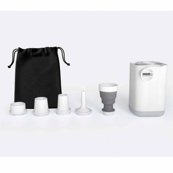 Of het nu gaat om een luchtbed, een kinderbadje of een zwembandjes: vanaf nu hoeft u niet langer moeizaam een mechanische luchtpomp te bedienen of uw longen te belasten om dergelijke dingen met lucht te vullen. Druk gewoon op een knop en de MINI-ACCULUCHTPOMP doet het werk! Dankzij de 5 verschillende opzetstukken past hij op alle ventielen, ook op de ventielen van wedstrijdballen (voetballen, volleybalballen, etc.). Omdat de krachtige accu ook als powerbank voor smartphones en dergelijke kan worden gebruikt en bovendien een zaklampfunctie heeft, is hij een ontzettend handig hulpmiddel, vooral tijdens het kamperen of andere uitstapjes. Afmetingen (b x h x d): ca. 6 x 9 x 5 cm. Laat het apparaat het werk doen!