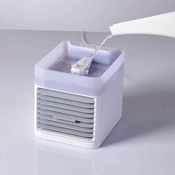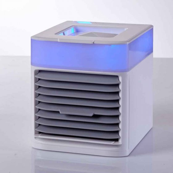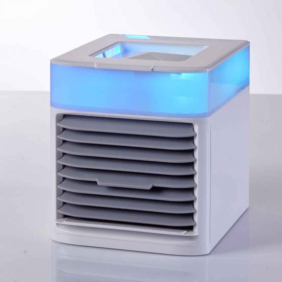 Restez au frais tout l’été ! Le MINI CLIMATISEUR AVEC LUMIÈRE D'AMBIANCE rend les grandes chaleurs plus supportables. Et ce sans aucun produit chimique, car il rafraîchit les pièces par évaporation. Mettez jusqu’à 500 ml d’eau dans le réservoir, sélectionnez une des 3 intensités de refroidissement et profitez d’une fraîcheur agréable pour une durée de 10 heures environ. Le panneau à LED diffuse en parallèle une lumière d’ambiance – en 7 couleurs au choix. Alimentation par câble USB (inclus). Dimensions (l x H x P) : env. 15 x 17 x 16 cm. Filtre résistant aux moisissures ! Offrez-vous un peu de fraîcheur – également idéal en voyage.