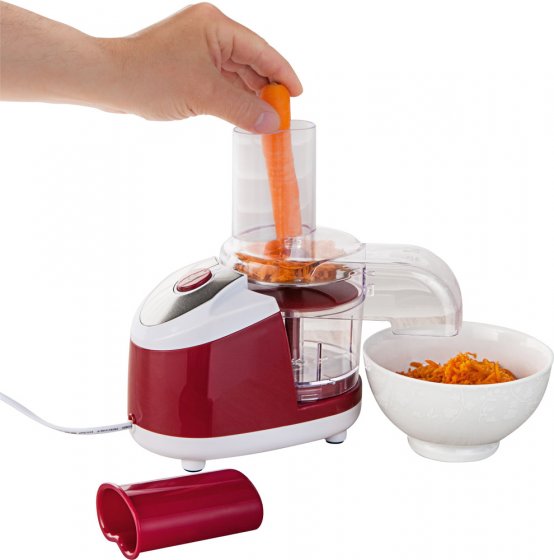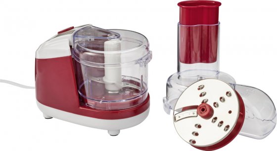 Eindelijk een universeel snijapparaat, dat met de volle kracht overtuigt – en toch zo compact is dat het weinig ruimte nodig heeft! Uien kleinsnijden, kruiden hakken, rauwkost raspen, fruitsalade en BBQ-bijlages maken, jam en nagerechten voorbereiden... De MINI KEUKENMACHINE doet dit alles in een handomdraai voor u! Hierbij zorgen de RVS raspmessen en RVS messen in s-vorm voor super snelle verwerking. Zelfs de reiniging van de onderdelen is dankzij de praktische uitwerpfunctie snel en gemakkelijk gedaan! Het beste is: uw nieuwe “keukenchef” is met slechts ca. 18 x 11 x 24 cm absoluut plaats besparend op te bergen! Sterke motor: 250 watt. Inhoud ca. 0,4 liter met vaatwasmachine geschikte onderdelen en veiligheidszekering – ondanks scherpe messen geen gevaar voor verwonding!