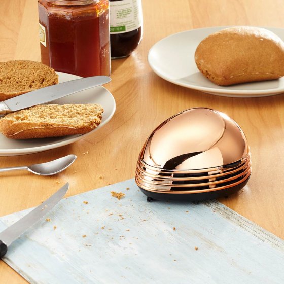 Dweilen is van gisteren! Nu zuigt u ook kleine ongelukjes eenvoudig op. Gewoon over tafels, planken, bekleding, of autostoelen leiden en meteen al verslindt deze MINI-KRUIMELDIEF kruimels, stof en dierenharen. Zijn grote zuigkracht dankt dit energieke hulpmiddel aan de geïntegreerde centrifugale hogesnelheids-ventilator (3 V). Kleine borstels aan de onderkant zorgen voor perfecte netheid. Vervolgens wordt de opvangbak gewoon geleegd – klaar. Dit bespaart tijd en keukenpapier. Afmetingen (l x b x h): ca. 10,6 x 8,5 x 6,7 cm. Werkt op 2 x 1,5 V AA-batterijen (afzonderlijk te bestellen). Deze hulp maakt niet alleen schoon, hij maakt u ook vrolijk.