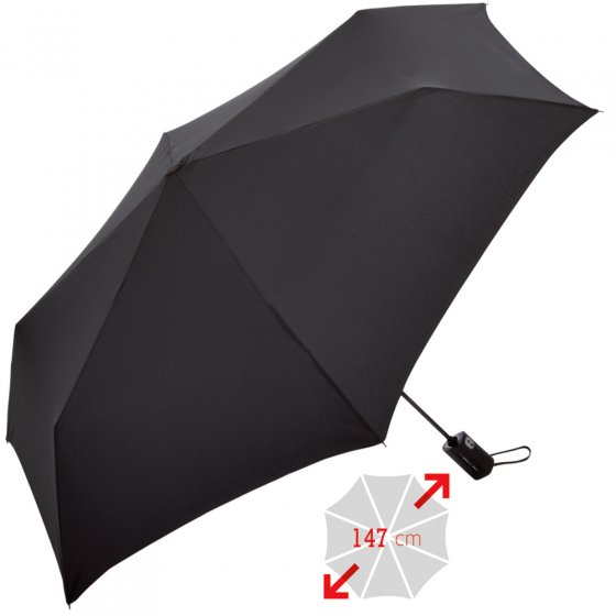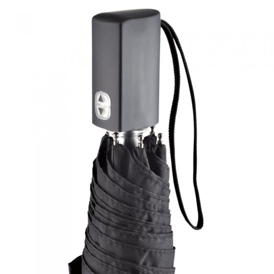 Pratiquement tous les parapluies de poche s'ouvrent automatiquement en appuyant sur un bouton. Mais combien en connaissez-vous qui se referment également automatiquement en appuyant sur un bouton ? Notre MINI-PARAPLUIE DE POCHE AUTOMATQUE en fait partie : si vous n'utilisez plus votre parapluie, il vous suffit d'appuyer sur le bouton situé sur le manche en gomme pour voir les baleines se replier d'elles-mêmes. Tout ce qu'il vous reste à faire, c'est de le rentrer et d'attacher la fermeture à velcro. Terminé ! Grâce à l'utilisation d'aluminium et d'un acier-carbone spécial, ce parapluie ne pèse que 255 g. Et pourtant son diamètre n'est pas des moindres : env. 98 cm. Sa toile en pongé de polyester enduit de téflon est 100% imperméable et coupe-vent (tests TÜV à l'appui). Longueur replié : env. 29 cm. Difficile de trouver plus confortable !