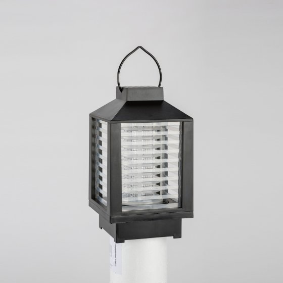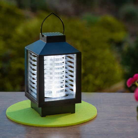 Het is nog maar net donker of ze zijn al overal: vervelende muggen, waarvan de steken verschrikkelijk jeuken! De MOBIELE UV-INSECTENVERDRIJVINGSLAMP trekt muggen, motten en vliegen op magische manier aan, en houdt ze uit uw buurt! Bij het naar binnen vliegen van de lamp raken ze automatisch het geïntegreerde metalen draadrooster, dat ze met een elektrische schok kort en pijnloos doodt. De lamp kan worden neergezet en opgehangen. Wanneer u de insectenverdrijvingsfunctie niet nodig hebt, kunt u de lamp dankzij de tweede lichtmodus veranderen in een sfeervol led-windlicht. Werkt op 2 AA-batterijen (afzonderlijk te bestellen). Afmetingen (b x h x d): ca. 10 x 18 x 10 cm. Gewicht: ca. 300 g. Een sfeerverlichting die ook nog eens heel effectief is.