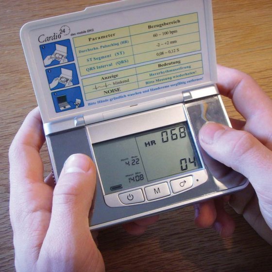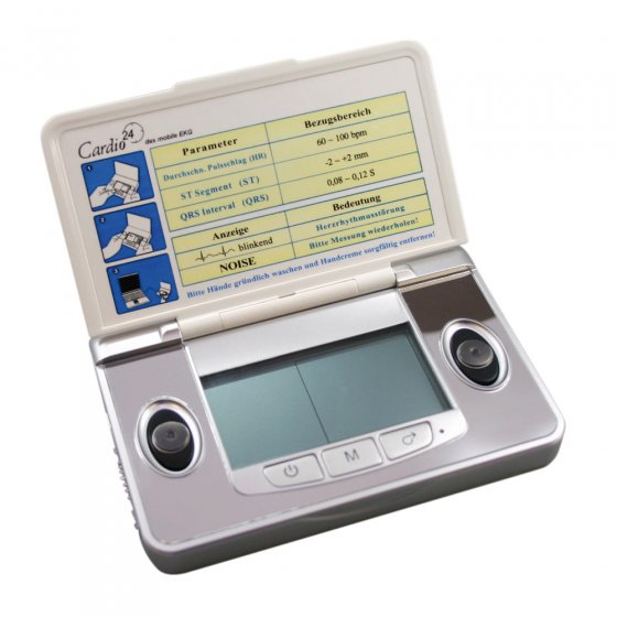 Le MONITEUR ECG PORTATIF contrôle rapidement et avec une grande fiabilité les valeurs principales d’un ECG et veille ainsi à votre sécurité et à votre bien-être ! Les mesures apparaissent en 30 sec. seulement après que vous ayez posé vos doigts sur les surfaces de contact, le tout sans câble gênant ! Les valeurs principales d’un ECG (pouls, segment ST, intervalle QRS, arythmie) sont bien lisibles et peuvent être transférées sur un PC par un câble USB, imprimées et envoyées par e-mail. En cas de valeurs problématiques, ce moniteur compact (env. 12 x 8 x 2 cm) envoie une alerte. Fonctionne avec 2 piles AAA (vendues séparément). Produit médical CE 0197. Utilisation très simple, parfait en déplacement et pour les personnes à mobilité réduite. Ne remplace pas les visites de contrôle chez le médecin mais vous apporte une sécurité supplémentaire
