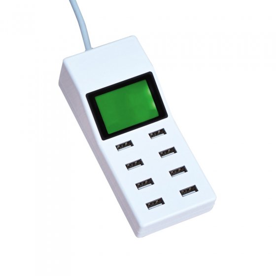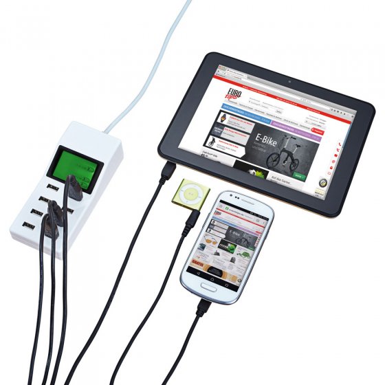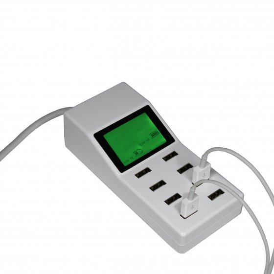 Steeds meer elektronische apparaten moeten via een USB-kabel opgeladen worden. De juiste adapter voor het stopcontact ontbreekt echter vaak. Dat is met dit MULTI-USB-OPLAADSTATION geen probleem meer. Het beschikt nl. maar liefst over 8 aansluitingen! Met een totaal vermogen van 9,2 A kunt u zo diverse apparaten tegelijkertijd en zonder snelheidsverlies opladen - een smartphone is ca. 1 A nodig. Het apparaat herkent automatisch welke ampèrage bijv. voor uw tablet of uw oplaadbare zaklamp benodigd is. Het display toont u overzichtelijk de betreffende laadstand. Afm. (lxbxh): ca. 6 x 14 x 4 cm. Vanaf nu zijn adapters verleden tijd!