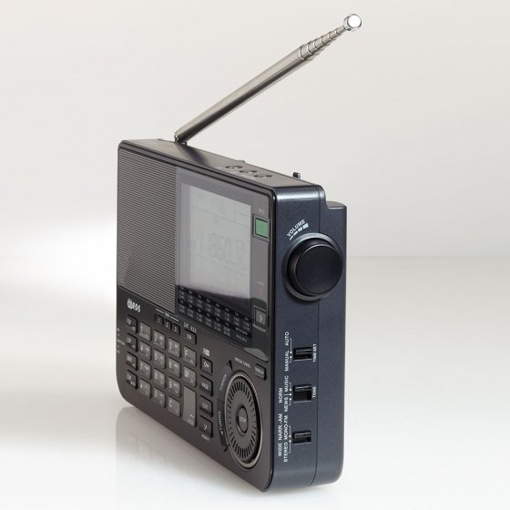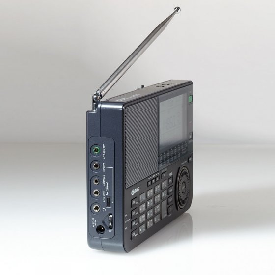 Alle kortegolfbanden (1,711-29,999 MHz), FM met extra informatie via RDS, lange golf (153-519 kHz) en middengolf (520-1,710 kHz, met ver/dichtbij-schakelaar), automatisch/handmatig zoeken naar frequenties en directe frequentie-ingave, zendernamen kunnen individueel worden gewijzigd, verlichte lcd-display met weergave van de batterijstatus en signaalsterkte, alarm, snoozefunctie, slaaptimer, aux-in, line-out en koptelefoonaansluiting.