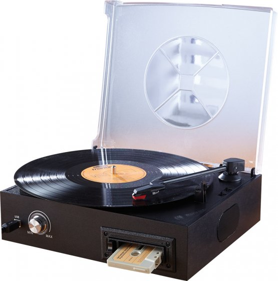 Op deze top moderne MULTIMEDIA-PICK-UP met uitstekende geluidskwaliteit kunt u niet alleen elpees, singles, schellak platen en audiocassettes afspelen, u kunt ze eveneens digitaliseren. Hij is voorzien van een USB aansluiting en d.m.v. de meegeleverde kabel kan hij regelrecht met een pc worden verbonden, om platen cassettes snel en moeiteloos op te slaan als MP3 bestand. Deze kunt u dan op cd’s branden en voortaan (bijna) overal beluisteren. Zo wordt uw muziekcollectie „nieuw leven“ ingeblazen! Pick-up (33, 45, 78 toeren/min) met geïntegreerde versterker en