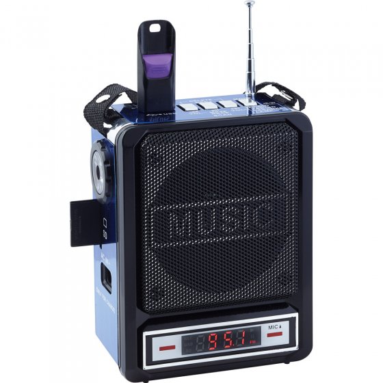 Avez-vous déjà entendu une super chanson à la radio et regretté de ne pas avoir pu l'enregistrer immédiatement, de préférence auformat numérique ? C'est désormais possible avec notre MUSIC-BOX PORTATIVE ET RECHARGEABLE, et ce, où que vous soyez ! Vous aurez juste besoin d'une carte SD (vendue séparément) ou d'une clé USB. La batterie intégrée et puissante vous permet d'écouter la radio pendant huit heures, sans avoir besoin de brancher la station (fonctionne également avec 4 piles AAA). Parfaite pour les soirées barbecue en plein air ou au camping ! Appuyez sur la touche MP3/REC/SCAN dès qu'une chanson que vous aimeriez enregistrer est diffusée. Vous pouvez également enregistrer votre propre voix sur un fond musical grâce à la fonction micro intégrée : la station se transforme ainsi en appareil pour karaoké ! Dim. env. 16 x 12 x 7,3 cm. Câble d'alimentation et de chargement inclus, piles disponibles séparément. Vous pouvez dès à présent enregistrer vos morceaux préférés, chez vous ou à l'extérieur !