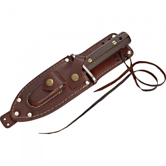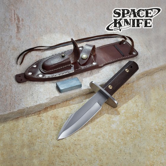 In de jaren 60 ontwikkelde de NASA speciaal voor het ruimtevaartprogramma het survival-mes “17 Astro”. Ons AMERIKAANS ASTRONAUTENMES is een natuurgetrouwe replica. Een van de originele messen werd, na 40 jaren met de nu geborgen Mercury-capsule op 4.600 meter diepte te hebben gelegen - noch steeds intact gevonden. Twee originelen van de “17 Astro” bevinden zich in het ruimtevaartmuseum in Washington. Bestel deze nieuwe versie van deze legende! Hoewel het werd ontwikkeld voor de ruimte, is dit mes ook hier op aarde een bovennatuurlijke helper. Blad van 420 RVS, greep van micarta. Totale lengte: ca. 25 cm.