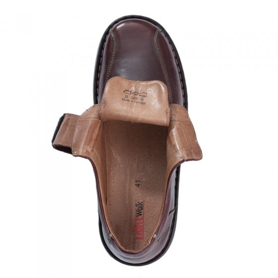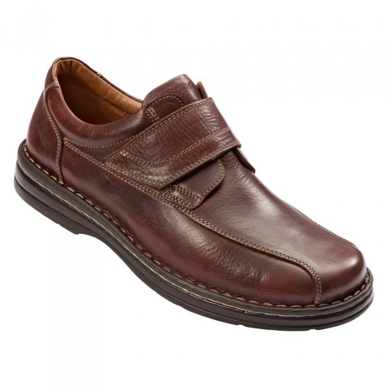 In roodbruin werkt deze COMFORT KLITTENBAND SLIPPER "LIGHT WALK" bijzonder chique en combi sterk. Het biedt een sensationele stap, zonder vermoeidheid: Het zachte voetbed biedt een levendige stap en de schokdempers zorgen voor soepele gewrichten. De voet rolt op de lichte, flexibele zool goed af! Kraag en tong zijn opgevuld en schuren niet, de klittenband sluiting zorgt voor een gemakkelijke toegang en individuele ondersteuning. Keurige verwerking met discrete decoratieve stiksels. De binnenzool is uitneembaar en de zool is echt gestikt - en ook anti-slip. Bovenkant 100% leer, voering: leer, zool: synthetisch materiaal.