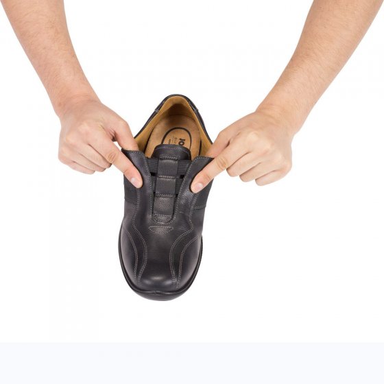 Sportieve slippers van het kwaliteitsmerk Jomos: deze COMFORTABELE STRETCHINSTAPPERS is gemaakt van hoogwaardig rundleer. Zijn luchtkussenzool met dempingszone werkt bij elke stap als een 'airbag'. U loopt verend en een beetje zoals op zacht mos – en ontlast wervelkolom en gewrichten. Een breed stretch-inzetstuk op de wreef maakt deze mannelijke schoen flexibel. Uitmuntende verwerking met zacht verdikte schachtrand, sportieve stiknaden en verhoogde, steun gevende hakvorm. Bovenwerk en binnenmateriaal van 100% leer, loopzool van kunststof, zacht verdikt wisselvoetbed.