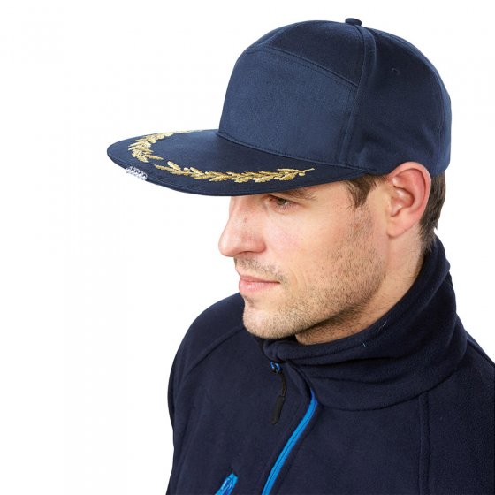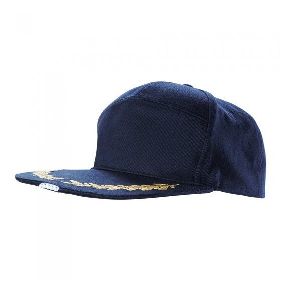 Deze pet hebben wij gecopieerd voor u van de commandant van het vliegdekschip van de Amerikaanse marine! De COMMODORE PET heeft een bijzonder langwerpig scherm dat de ogen beschermt tegen reflecties van zonnestralen. Ze is ook versierd met de lauweren van de overwinning, die de Admiralen zeer waarderen. Special "hoogtepunt": Aan de voorkant van het scherm verlichten 5 LED's, dat maakt dat zijn drager ook 's nachts goed ziet (via geïntegreerde knoopcel batterij). Met verborgen aan / uit schakelaar, ventilatiegaten en verstelbare klittenbandsluiting. Materiaal: 100% katoen. Één maat, schermgrootte ca. 10 x 18 cm. Deze pet opent nieuwe horizons!
