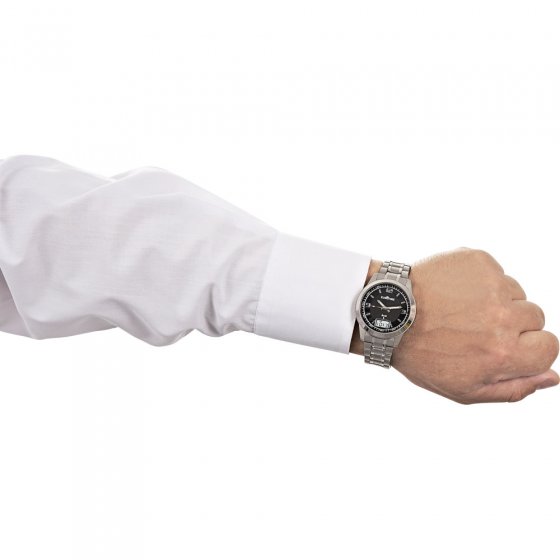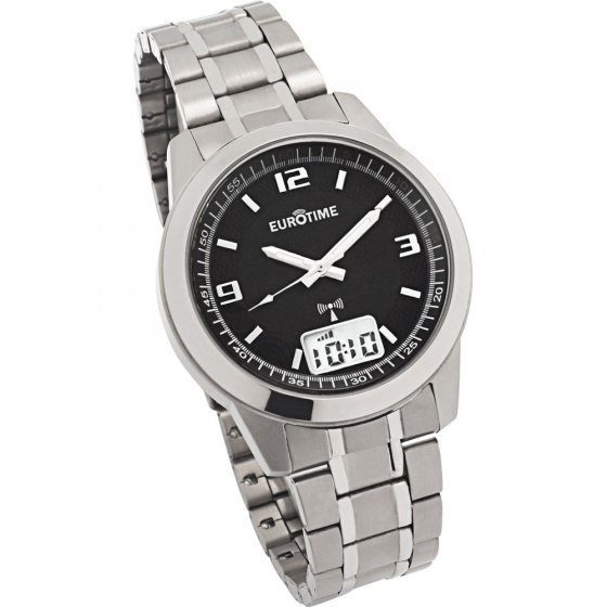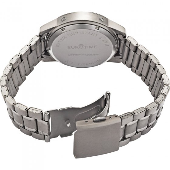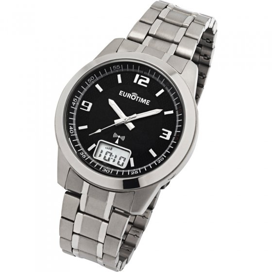 U waardeeert stabiele en robuuste horloges met ketting schakel armband, maar wil niet een zware "klomp" aan uw pols? Dan is het FUNKHORLOGE "TITANIUM" echt iets voor u: Kast en armband met veiligheidssluiting zijn enorm corrosiebestendig, maar ook zeer licht materiaal van titanium. Voordeel voor mensen met een gevoelige huid die problemen hebben met roestvrij staal horloges: Titanium doet geen irritatie van de huid veroorzaken! Dankzij de geïntegreerde DCF77 radiosignaal-ontvanger is de "Titanium" atomic horloge accurate - een zekere afwijking in het traject van seconden wordt niet eerder verwacht dan over enkele duizenden jaren. Het LCD-display toont naar keuze de tijd, seconden en weekdag of datum. De afdekking is gemaakt van krasbestendig mineraal glas, de vloer is geschroefd. Waterdichtheid: 3 ATM. Batterij (knoopcel inbegrepen). Behuizing afmeting ca. Ø 41mm, hoogte: ca. 12 mm. Met deze horloge heeft u het "licht" om altijd op de seconde na op tijd te zijn!