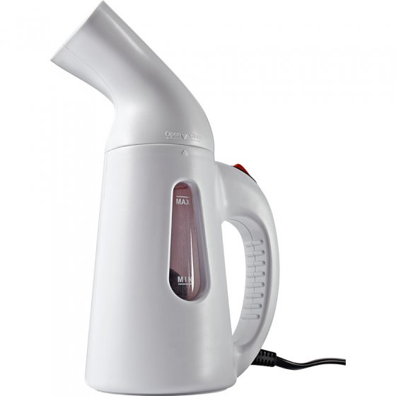 Verkreukeld textiel is normaliter een probleem voor het strijkijzer – maar bij linnengoed of tafellakens is het strijken als gauw een heksenwerk en zeker bij de gordijnen. Nu is er een oplossing! Met de HAND-STOOMREINIGER is al uw textiel, in iedere vorm en maat, gemakkelijk glad te maken. Het te behandelen textiel hoeft niet op de strijkplank worden neergelegd – het mag gewoon hangen. Simpelweg de stof langzaam van boven naar beneden met de hand-stoomreiniger afstomen. De hete waterdamp haalt zo niet alleen al de kreukels eruit, maar neutraliseert ook nog de onaangename geurtjes. Behalve voor het gladmaken van textiel, kunt u het apparaat ook nog gebruiken voor het losmaken van vet en vuil – bijv. op de keukentegels. De 800 watt sterke handstoomreiniger is na het vullen binnen 30 sec gebruiksklaar. Afm.: ca. 15 x 9,8 x 22 cm; gewicht (gevuld): ca. 630 g. Nooit meer last van hardnekkige kreukels – en ook de rimpels op uw voorhoofd verdwijnen als u aan het gladmaken van uw tafellaken denkt!