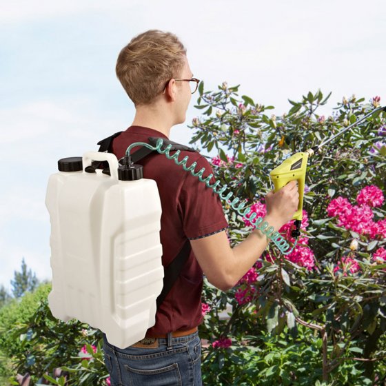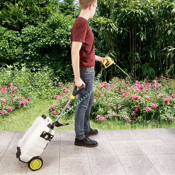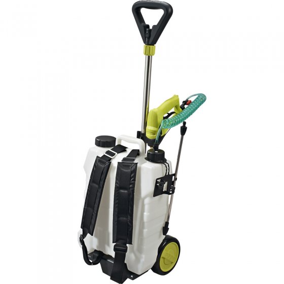 Nach dem Winter steht bald wieder Gartenpflege an: Blumen und Nutzpflanzen müssen gewässert, gedüngt und vor Schädlingsbefall geschützt werden. Das KABELLOSE GARTEN-SPRÜHGERÄT erleichtert Ihnen diese Arbeit: Es steht auf Rollen, sodass Sie keinen schweren Tank schleppen müssen, und dank der integrierten akkubetriebenen Pumpe brauchen Sie auch nicht zu pumpen. Sprühweite: max. 5 m, Durchflussmenge ca. 650 ml/Min., Betriebsdauer bei vollem Akku: 40 Minuten. Fassungsvermögen: 15 l. Maße mit Griff: ca. 28 x 40 x 97 cm. Falls Sie maximal mobil sein wollen, können Sie sich das Sprühgerät auch über die Schulter hängen (Tragegurt inklusive) – so kommen Sie auch gut durchs Unterholz.