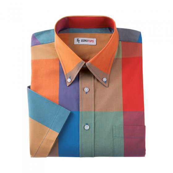 Een luchtig materiaal, een karaktervolle Madrasruit, zoals men ze weeft in India en West-Indië ... Kortom, dit KATOENEN OVERHEMD MET KORTE MOUWEN “MADRAS” is een puur zomers plezier! Het is gemaakt van lichtgewicht, ademend en gemakkelijk te onderhouden katoen en met een Madrasruit in een harmonie van felle kleuren zoals rood, blauw, oranje en geel met een zonnige chic. 100% katoen, wasbaar in de machine. Button-down-kraag, borstzak, afgeronde zoom. Een overhemd extra voor op vakantie tegen een prijs van een goed humeur.