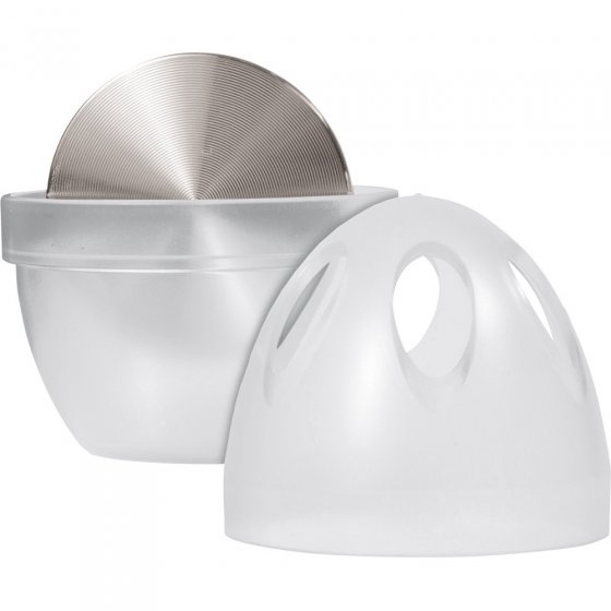 Boter die naar uien ruikt? Sterk ruikende levensmiddelen brengen hun luchtje in de koelkast graag over op andere levensmiddelen ? zelfs als ze in afgesloten plastic doosjes bewaard worden. Dat kan zo niet langer! De KOELKASTGEURVRETER met een schijf van edelstaal neutraliseert luchtjes en remt de geuroverdracht tussen levensmiddelen. Dat speelt ’ie klaar zonder chemische toevoegingen ? u kunt hem dan ook zonder meer tussen open verpakkingen plaatsen. Gebruik: was de edelstalen schijf eerst af met een vetoplossend spoelmiddel. Vul vervolgens het reservoir van de geurvreter tot de markering met water, plaats de schijf in het reservoir en zet de geurvreter op een geschikte plaats in de koelkast. Klaar! Diameter: ca. 6,2 cm. Hoogte: ca. 8,5 cm. De geurvreter verliest zijn werkzaamheid niet en u kunt hem vrijwel onbegrensd lang gebruiken. Met zijn hulp maakt u een definitief einde aan penetrante koelkastluchtjes ? ijskoud!