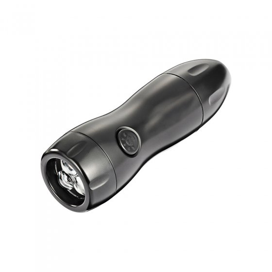 Kent u dat? U bewaart jarenlang een zaklamp in de keuken lade - en net op het moment dat u ze nodig heeft, zijn de batterijen leeg! Met de LED ZAKLAMP ECO-TWIST kan u dat niet meer gebeuren: De werking is hier door spierkracht. Om het licht te laten schijnen, moet u de hendel draaien, slechts een paar seconden net als een pepermolen - dan laadt een condensator op, en levert stroom voor enkele minuten licht duur. (Na 30 seconden draaien is de condensator volledig opgeladen, de lichtduur is dan ongeveer 7 minuten.) Voordeel: u hoeft nooit zaklamp batterijen te kopen - en u hebt nog steeds de zekerheid dat het licht werkt. Overladen door te lang draaien is uitgesloten. De ECO-TWIST lamp heeft een maximale lichtopbrengst van 9.000 lux, de behuizing gemaakt van ABS-kunststof is lekvrij. Lengte: ca. 13,9 cm. Diameter: ca. 4,2 cm. Hier vindt u uw draai!