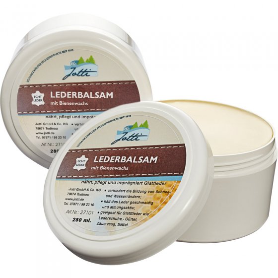 Geef uw schoenen, handtassen etc. en leren zitmeubelen een frisse uitstraling – met de geniale LEDERBALSEM! Het effect is verbluffend, want de oppervlakken zien al na de eerste behandeling als nieuw uit! Verbleekte kleuren en versleten plekken winnen weer aan diepe brille en zelfs vuil wordt grondig verwijderd! Reinigt en sealt. Verzorgt, conserveert en impregneert in één bewerking! Voorkomt en verwijdert sneeuw-, zout- en waterranden. Geschikt voor alle soorten gladleer (ook imitatieleer) en hout. In praktische set van 2, inhoud van elk blik 280 ml. Uitproberen is de moeite waard!