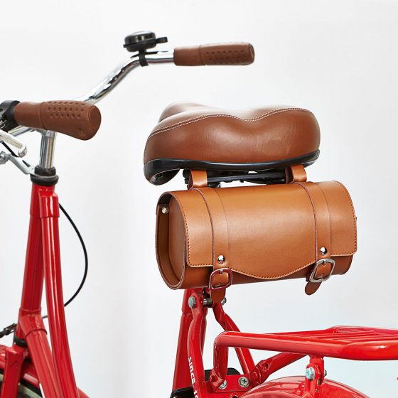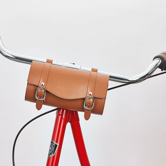 Wie graag kleinere of grotere tochten met de fiets aflegt, zal deze nostalgische LEREN STUURTAS weten te waarderen: net als in vroegere tijden wordt de tas gewoon met twee riempjes aan het stuur of het zadel bevestigd en afgesloten met twee rolgespen. Met de afmetingen (lxbxh) ca. 20 x 8 x 10 cm biedt de stuurtas van robuust rundleer ruimte aan gsm, sleutels, het belangrijkste gereedschap of iets lekkers voor onderweg. Ook bij langere ritten trotseert de tas weer en wind. Bij uw volgende fietstocht ziet uw fiets er nu bijzonder en chic uit!