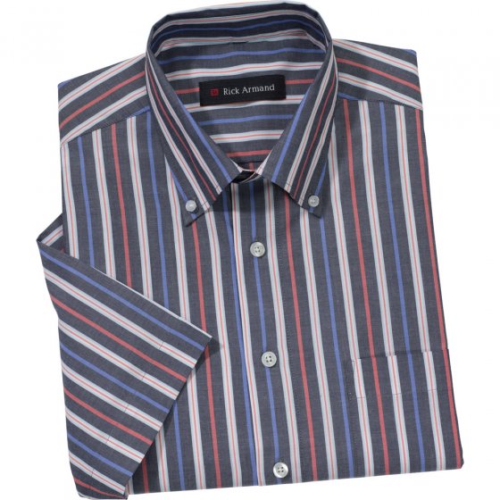 Smalle veelkleurige strepen op een donkere achtergrond geven dit shirt met korte mouwen een moderne look die u altijd goed liggen. U kunt het elegant of sportief combineren en slaat altijd een goed figuur! Dankzij de hoogwaardige kwaliteit van het materiaal 60% katoen en 40% polyester, is de MAKKELIJK TE STRIJKEN STREEPHEMD zeer comfortabel om te dragen, kreukvrij en gemakkelijk schoon te maken. Dankzij een afgeronde zoom kan hij ook los en nonchalant op de broek worden gedragen. Klassiek mooi, is het model met button-down kraag, borstzak en comfort plooien in de rug. Machine wasbaar. Een aantrekkelijk, ongecompliceerd hemd voor mannen die veel van plan zijn!