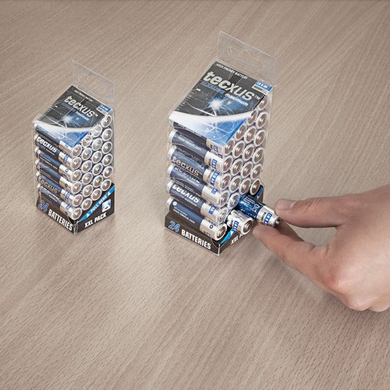 Hoeveel elektrische apparaten in uw huis worden gevoed door batterijen? Denkt u maar eens: Diverse afstandsbedieningen, zaklampen, de keuken radio, de woonkamer klok, de klok radio, de digitale camera ... het aantal is waarschijnlijk enorm. Dan is het zeer waarschijnlijk dat om de paar dagen ergens een vervanging van de batterij nodig is! Neem voorzorgsmaatregelen: Gebruik de AA EN AAA-BATTERIJEN tegen een speciale prijs in een 24-pack dan hebt u altijd voldoende vermogen in reserve. Alle batterijen zijn van hoge kwaliteit 1.5V hoge-energie-alkalinebatterijen. Dankzij het systeem van de batterijen kunnen ze afzonderlijk worden verwijderd uit de bodem van de praktische dispenser.