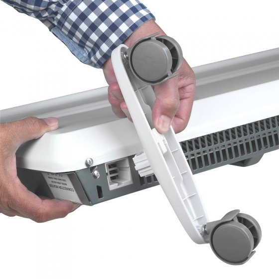 Het stookseizoen is nog niet begonnen, maar het is wel koud in de woonkamer? Als het klimaat het niet eens is met de kalender, dan hoeft u niet twee truien over elkaar aan te trekken: de MOBIELE CONVECTIE VERWARMING zorgt in de korte tijd voor gezellige warmte! Dankzij convectietechniek wordt de koude lucht aangezogen van de bodem en warme lucht wordt opgeblazen, het verwarmt de lucht veel sneller dan conventionele radiatoren - dus u hoeft geen schuldig geweten in termen van energieverbruik te hebben. Een automatische thermostaat en een timer, beide verstelbaar bij aanraking van de knoppen en LCD-scherm, maakt vraag-responsief mogelijk. Aangezien de verwarming op wielen is, kan het gemakkelijk worden gebruikt ??waar u de warmte nodig heeft - bijvoorbeeld in de kamer of in de serre. Bediening via netaansluiting (230 V). Afmetingen (L x B x H): 21 x 83 x 47 cm. Dus als u het in de overgangsperiode warm wil hebben - brengt u de dingen aan het rollen!