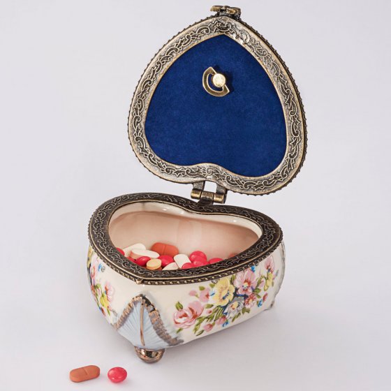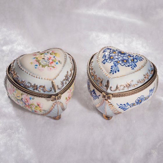 Zo mooi en lieflijk: deze MUZIEK-JUWELENDOOS is ontworpen om de ogen en oren tegelijk te strelen. Hij is luxueus met bloemmotieven bedrukt en vervolgens met de hand beschilderd. Doos en dekselrand zijn liefdevol omrand met een fijn gedessineerde metalen sierband, met een kleine strik als afsluiting. Wanneer u het deksel opent hoort u lieflijke klanken uit het speeldoosje opstijgen. Afm.: ca. 75x 65 mm. Muziekdoos met mechanisch uurwerk. Een prachtig deco-object!