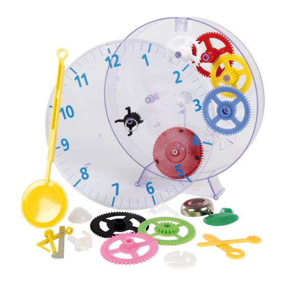 Mechanische bewegingen hebben iets fascinerends - de fijne mechanische interactie van tandwielen en veren, de tijd in uren, minuten en seconden “gehakt”, brengt niet alleen respect bij klokliefhebbers. Maar weet u precies hoe een mechanische klok werkt? Of wilt u het duidelijk uit leggen aan iemand anders? Dan is de PENDEL KLOK BOUWSET precies goed voor u! De waterdichte kit bestaat uit 32 hoogwaardige componenten - tandwielen, handen, veren, enz. - En een transparante huisvesting waarin we het draaien van de wielen exacter kunnen observeren. De afgewerkte klok werkt op het slinger principe; elke 15 minuten, klinkt er een geluidssignaal (uitschakelbaar). Wijzerplaat diameter: ca. 19 cm. Diepte: 3 cm. Als u van uurwerken gepassioneerd bent: Neem de tijd! Tip: De kit is geschikt als een cadeau voor neefjes of kleinkinderen!