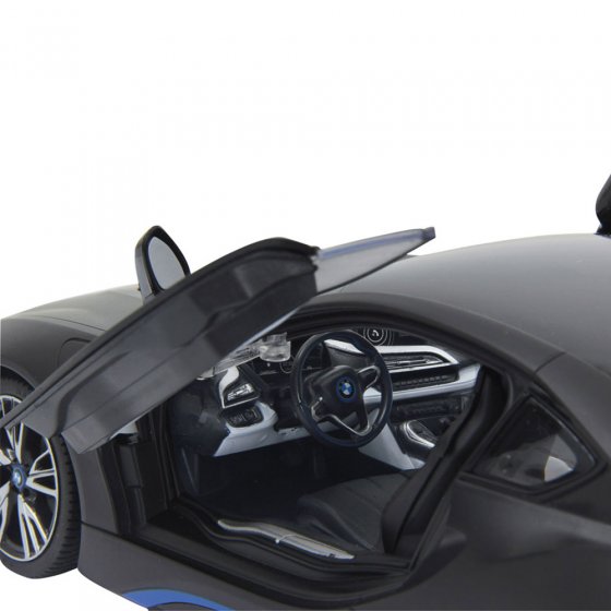 Afstandbedienbare modellen, die de oorspronkelijk zo gedetailleerd nabootsen zijn net als de RADIOGRAFISCHE BMW i8 uiterst zeldzaam - minstens zo vaak als de "toekomst auto" van BMW gevonden wordt op de openbare weg! De banden van het 1:14-model zijn van rubber, de vleugel deuren kunnen worden geopend met de afstandsbediening, en het interieur werd gemodelleerd naar elk detail. Over de 2-kanaals besturing kan de auto naar voren en achteren bewegen en natuurlijk draaien. Bediening van de afstandsbediening op een 9 V batterij en het model op 5 AA-batterijen (elk afzonderlijk verkrijgbaar). Afmetingen (L x B x H): ca. 34 x 16 x 9 cm. Rij de toekomst tegemoet!