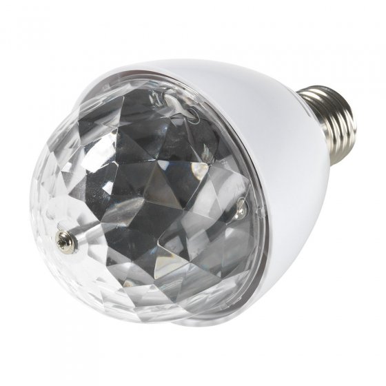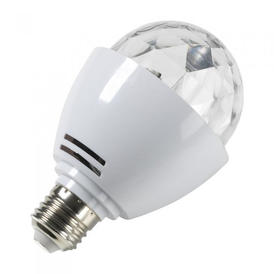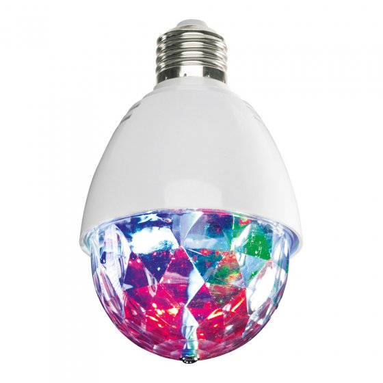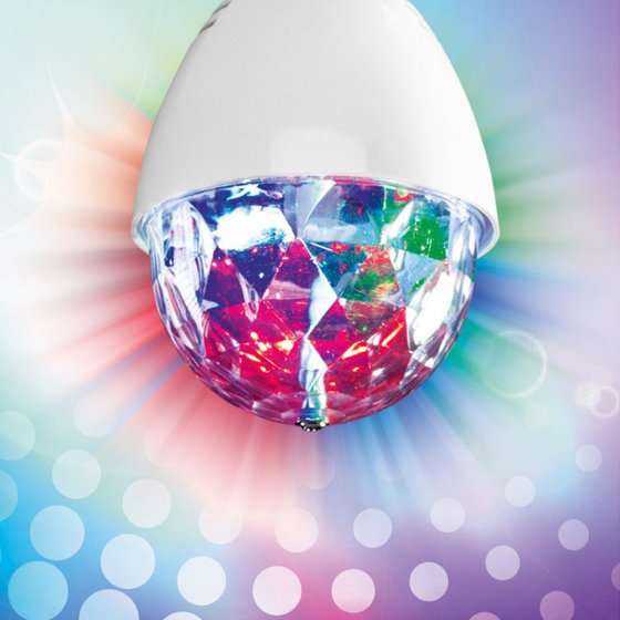 Muziek, drankjes, goed gehumeurde gasten - het enige wat ontbreekt is het juiste licht! Het ROTERENDE LED-PARTYLICHT tovert kleurrijke lichtpunten op vloer en muren - en past in elke standaard E27-fitting! Drie geïntegreerde led’s (rood, groen, blauw) zorgen voor de kleur, een ingebouwde motor voor het roteren van de lamp. Verbruik van het partylicht: 3 W. Lengte: ca. 13,5 cm. Diameter: ca.8 cm. Energie-efficiëntieklasse A. Gewogen energieverbruik (EG) van 3 kWh / 1000 h. Gewoon indraaien, en de party kan beginnen!