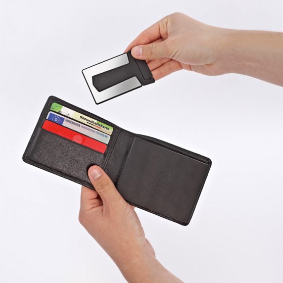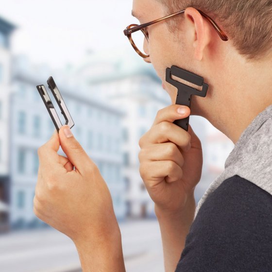Étui à manucure, peigne repliable... vous connaissez déjà ces accessoires. Mais connaissez-vous le RASOIR AU FORMAT CARTE BANCAIRE ? Il ne mesure que 3 mm d'épaisseur et l'ensemble des accessoires, composé de ce rasoir, de 2 têtes de rasage et d'un miroir n'est pas plus grand qu'une carte bancaire. Poids : env. 25 g seulement. Vous pourrez emmener ce rasoir partout ... dans votre portefeuille ! Un rasage rapide dans la salle de bain et vous voilà impeccable à tout moment de la journée ! Matière : plastique ABS (lames en acier inoxydable). Dim. (L x l) : env. 9 x 5 cm. C'est le gadget parfait pour tous les hommes qui aiment être rasés de près à tout moment de la journée et où qu'ils soient.