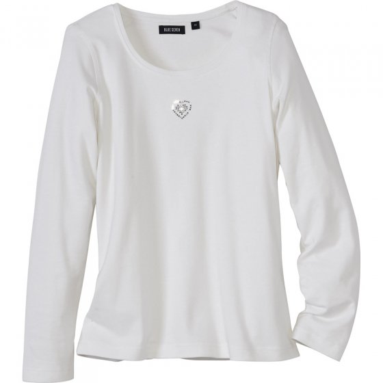 Heerlijk ongecompliceerd: SHIRT MET LANGE MOUWEN EN GLITTERHART. Tijdloos mooi model in zacht offwhite. Hoogwaardig, bewegingselastisch natuurmateriaal van puur katoen.