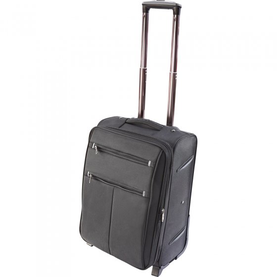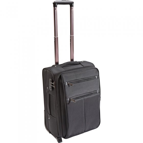 Een goede reis trolley moet in staat zijn om veel te weerstaan - immers, men wil hem veilig trekken op trappen, rollen over asfalt parkeerterreinen en opbergen in kluisjes. De ULTRA ROBUUSTE REISTROLLEY kan het allemaal: Dankzij de aluminium structuur (materiaal: Polyester) en de achterste rolbeugels die het optrekken van de reistrolley vergemakkelijken op trappen, is opgewassen tegen elke situatie. Met 2 rits zakken aan de buitenkant, met ritssluiting en geïntegreerde combinatie slot voor het hoofdvak. Afmetingen (L x B x H bij niet uitgetrokken handvat): ca. 25 x 38 x 55 cm. Netto gewicht: ongeveer 3 kg. Goede Reis!