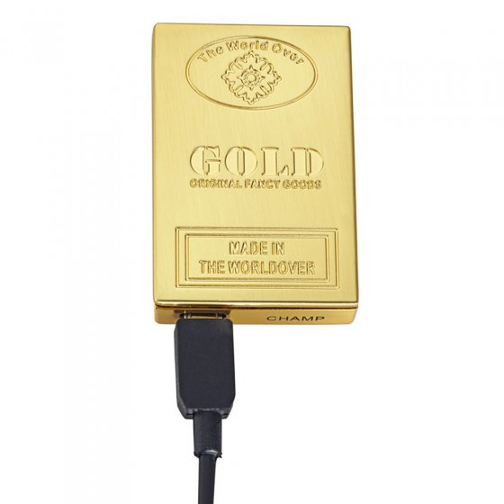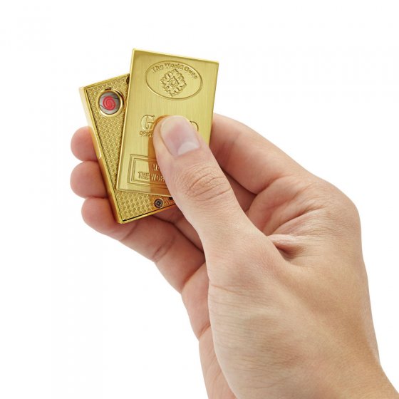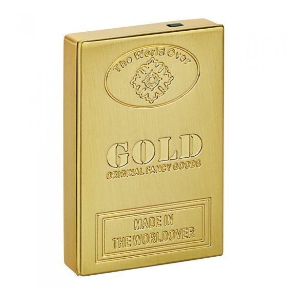 U kent vast het clichébeeld van de steenrijke man die met een bankbiljet zijn sigaar aansteekt. Hoe zou het zijn als u dit nog zou kunnen overtreffen? Met de USB-AANSTEKER MET GLOEISPIRAAL 'GOLD' overtroeft u in stijl alle lottowinnaars, rappers en magnaten – want de aansteker ziet er op het eerste gezicht uit als een goudstaaf van 50 g! Schuift men de deksel opzij, dan wordt een elektrische gloeispiraal geactiveerd, waarmee u uw sigaret kunt aansteken. De stroom komt van een geïntegreerde accu (op te laden via de meegeleverde USB-kabel). Afm. (lxbxh): ca. 55 x 35 x 10 mm. Er breken gouden tijden voor u aan!
