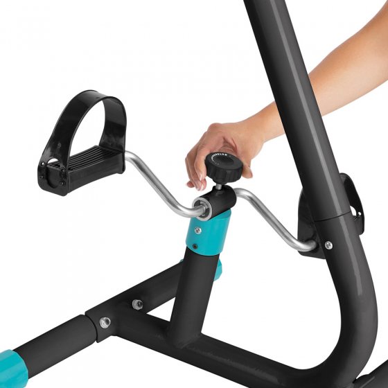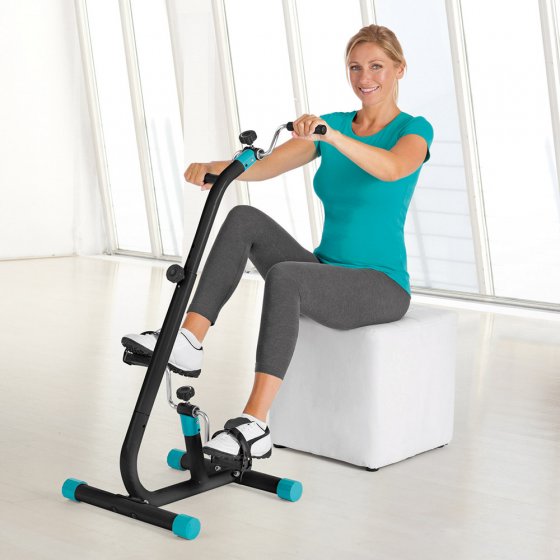 Dat men op elke leeftijd moet sporten om vitaal te blijven, is geen geheim. Maar moet men onbedingt de sportschoenen aantrekken als u iets aan uw gezondheid wil doen? Nee! Met de FITNESS TRAINER kunt u een arm- en beenspierttraining zittend doen: Positioneer het lichte, zeer robuste apparaat eenvoudig voor een stoel, zet deze op uw maat - en trainen maar! De weerstand kan individueel worden aangepast; Voetpedaallussen geven u een goede greep. Afmetingen (L x B x H): ca.46,5 x 29,5 x 93,5 cm. Voor sportieve activiteiten is de fitness trainer het ideale fitness-programma vervanging - voor alle anderen is het de sleutel tot een actievere en gezondere levensstijl.