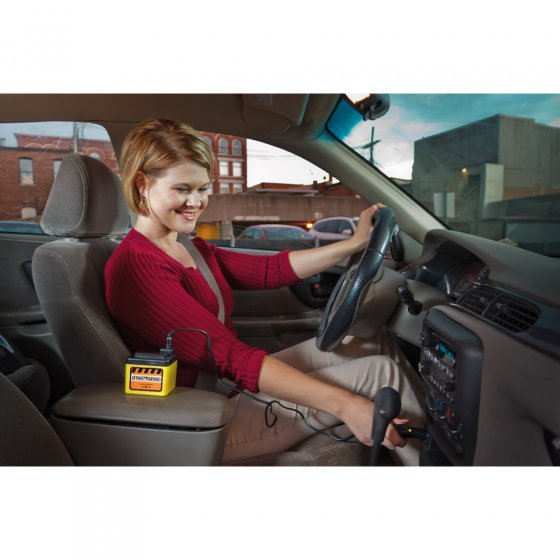 na ongeveer 15 minuten start uw auto weer. De nood starthulp wordt in voorgeladen toestand geleverd en is direct klaar voor gebruik. Afmetingen ca.: 8 x 6 x 8 cm. Aansluiting 12 volt, output 30 V(1500mAh) Geschikt voor diesel-en benzineauto‘s. Een zeer efficiënt, handig apparaat dat simpel weg in elk dashboardkastje hoort.