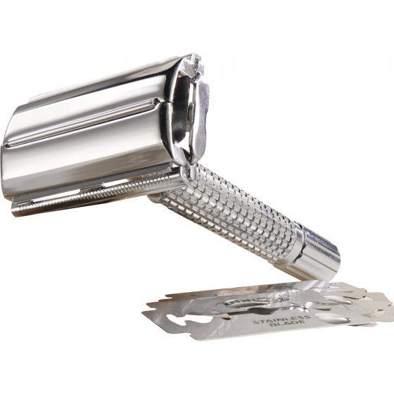 Er zijn dingen die al generaties lang door niets kunnen worden vervangen. Dit geldt ook voor het klassieke, elegante NOSTALGISCHE SCHEERMES van verchroomd messing! Mannen met een sterke baardgroei weten: zelfs goede elektrische scheerapparaten scheren niet zo grondig of een klassiek scheermes. Zeer eenvoudig te gebruiken: gewoon het draaimechanisme op het handvat van de scheerkop openen, het scheermesje invoegen en weer sluiten. De bewezen spiraalvormige snijkop zorgt voor een buitengewoon effectieve en zachte scheerbeurt! Geleverd in een handige reistas met geïntegreerde spiegel. Incl. 6 scheermesjes van roestvrij staal en reinigingsborstel. Onweerstaanbaar glad!